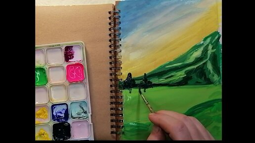 Лето в предгорье. Пейзаж гуашью на крафтовой бумаге.