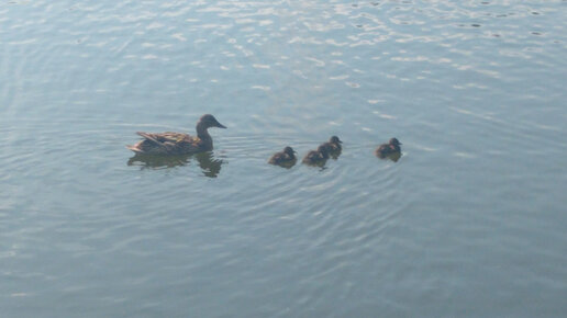 Парк, мама утка и её утята