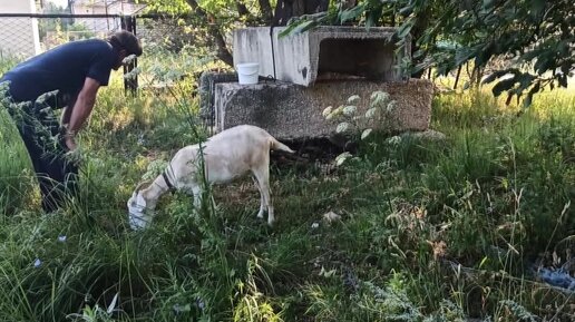 Новое утро в глубинке. Душ для козы. Последний раз кормим козлят перед продажей.