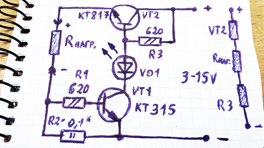 Как сделать простой автоматический ограничитель величины постоянного тока на транзисторах, схема и пояснение ее работы