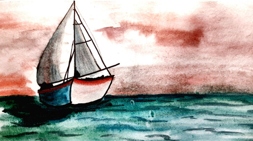 Как нарисовать морской пейзаж акварелью. Как нарисовать море легко. Рисуем яхту. Простые рисунки. Море акварелью.