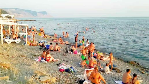 Галечный пляж на закате