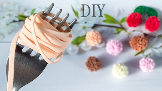С помощью вилки можно сделать красивые пушистые помпоны из фоамирана для создания украшений .
