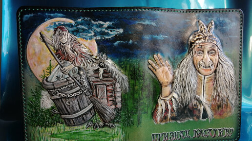 Работа для конкурса: " В гостях у сказки". Изделия из кожи. СКСтиль. Обложка для ежедневника. "Бабка-Ёжка. Признал, касатик?"