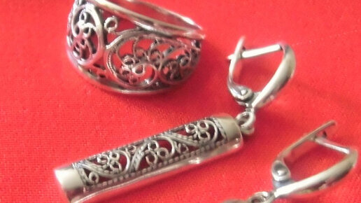Оксидированное серебро. Кольцо и серьги. ( Из покупок на Wildberries).
