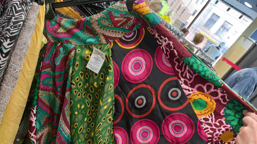 Обзор летнего ассортимента в секонде. Больше всего понравилась яркая юбка с цветными кругами