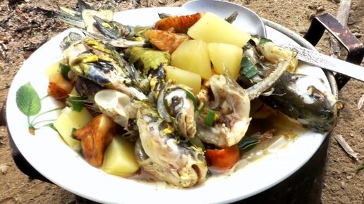 Настоящая рыбацкая УХА на костре, из касатки с грибами, по рецепту рыбака