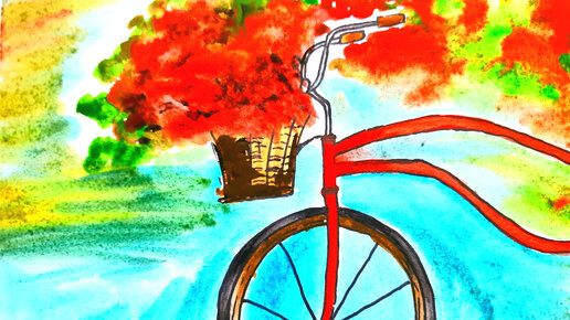 Рисуем велосипед с цветами. Рисуем пейзаж. Рисуем скетч. Рисуем акварельными красками легко. Простые рисунки.