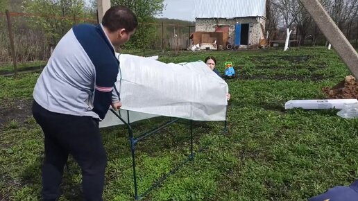 Копаемся в огороде. Установили парник. Посадили огурцы и помидоры