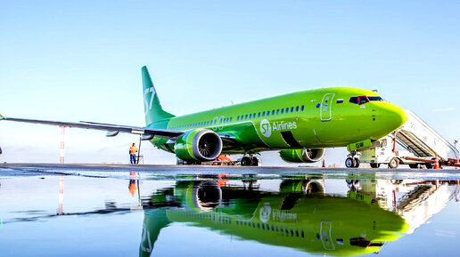 РУЛЕНИЕ и ВЗЛЁТ пассажирского САМОЛЁТА, Боинга S7 Airlines