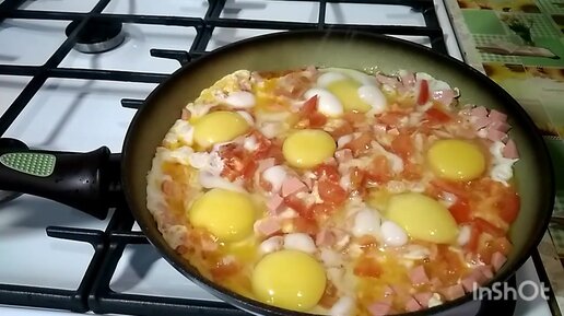 Как вкусно пожарить яйца! Яичница с колбасой, помидорами и сыром!