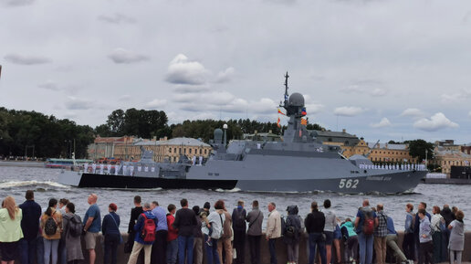 Военные корабли и пролет авиации. Генеральная репетиция парада ВМФ. Санкт-Петербург