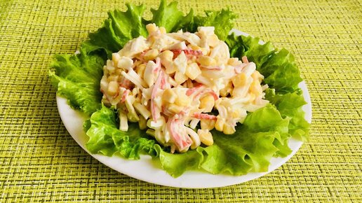 Ну очень быстрый салат с крабовыми палочками.