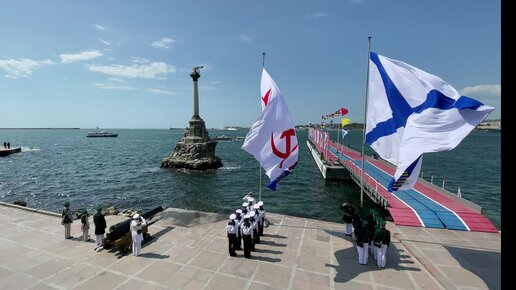 Поднятие флагов на Флагшток - В Севастополе прошла репетиция парада дня Военно Морского Флота России