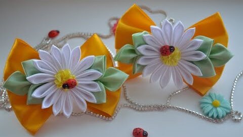 Бантики с ромашкой Канзаши