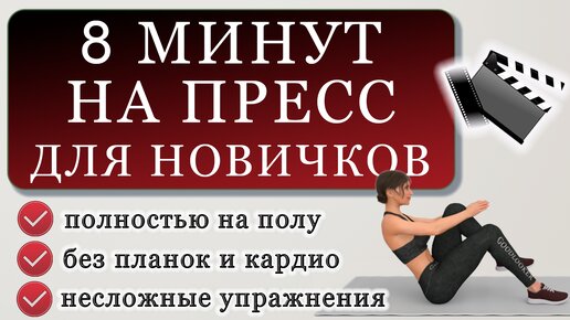 Тренировка пресса для новичков на 8 минут (на полу, без планок)