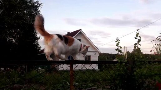 Как кошка гуляет по забору, охраняя территорию