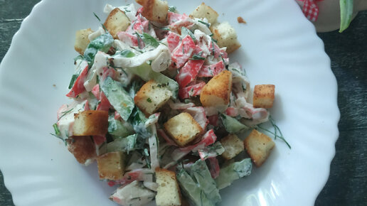 Нашла новый рецепт салата с крабовыми палочками. Ничего не нужно варить, нарезал, заправил и готово. Салат на скорую руку