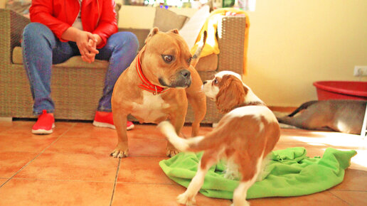 Взрослая собака напугала маленького щенка! Реакция собак на нового щенка в доме.