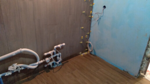 Укладываем плитку в ванной своими руками. Часть 9. Закончил пол и первую стену.