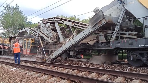 Как железнодорожники снимают перекладывают щебенку с путей🚂