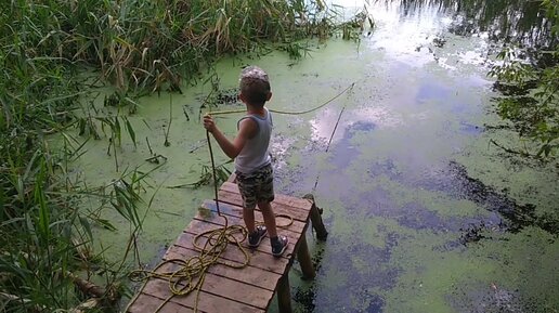 Магнитная рыбалка с пятилетним сыном. И у него неплохо получается.