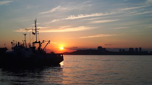 Таймлапс. Закат, берег, корабли