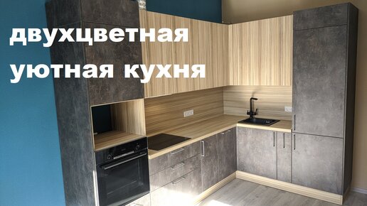 Красивая,двухцветная кухня/практичный и уютный кухонный гарнитур.