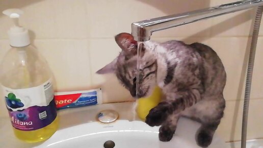 А говорят, что кошки боятся воды!😂 Котенок и водные процедуры😺