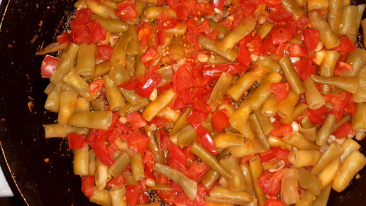 Одно из самых полезных и простейших блюд. Зеленая фасоль с помидорами.Рецепт
