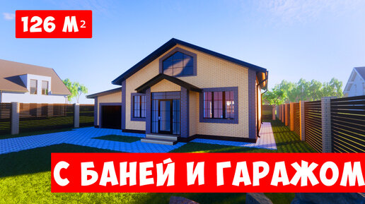 Одноэтажный дом с гаражом и баней. Дом из 2.1 НФ с утеплением и облицовкой из кирпича. Проекты домов