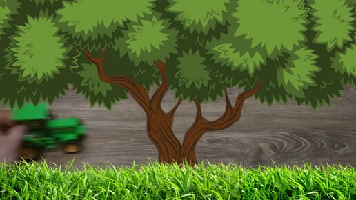 Трактор едет на ферму. Дорога перекрыта камнем.