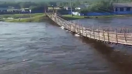 Гений из Забайкальского края попытался проехать по подвесному мосту на фургоне во время наводнения,