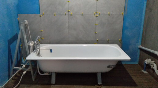 Укладываем плитку в ванной своими руками. Часть 10. Начал класть плитку "под бетон"