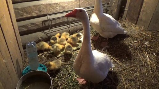 Гусак радуется, пляшет! Он зовёт своих гусят на ужин!