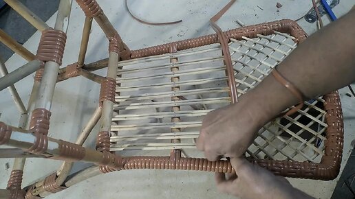 Плетеная мебель своими руками. Плетение стула ротангом часть 3.