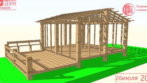 Проект открытой беседки 5 на 5 с верандой для самостроя
