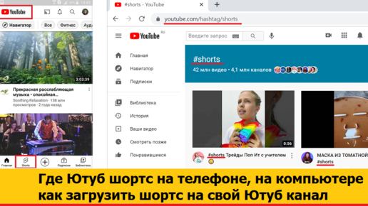 Где Ютуб шортс находятся на телефоне, на компьютере и как можно загрузить шортс на свой Ютуб канал