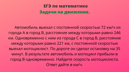 В результате автомобиль и мотоцикл прибыли в город В одновременно
