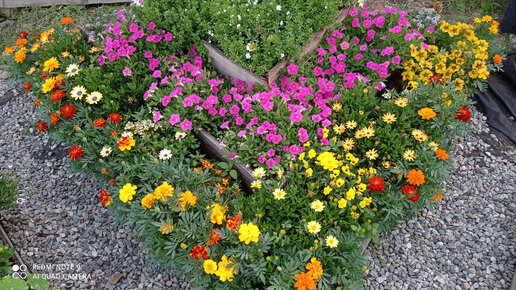Многоярусная треугольная клумба из досок своими руками