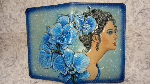 Обложка для паспорта и авто документов. Изделия из кожи. СКСтиль. Видео обзор: Голубая орхидея.