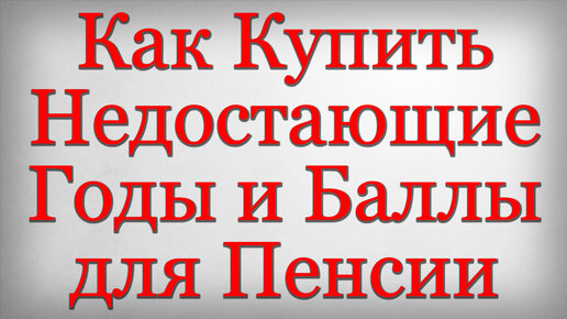 Как Купить Недостающие Годы и Баллы для Пенсии