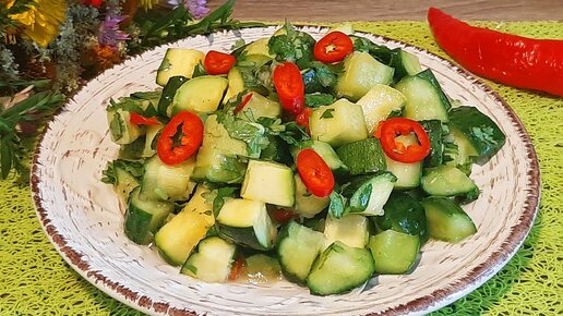 Простой салат из сырых кабачков с ароматной заправкой.
