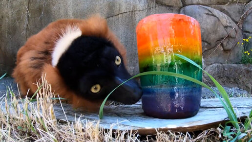Лемуры Орегонского зоопарка лакомятся мороженым в жару