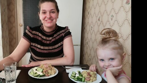 Мукбанг: Тушеная картошка с колбасками//Свежие огурцы со сметаной