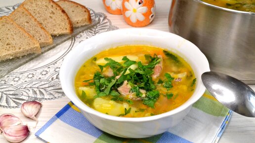 Гороховый суп с мясом свинины. Рецепт не сложный, немного отличается от классического с копчеными ребрышками