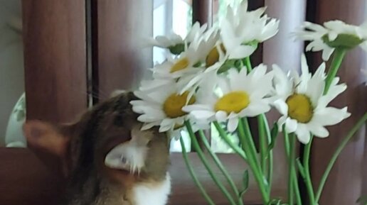 Как кошка с цветами по тихому разбиралась
