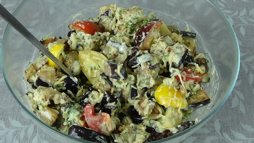 Летний Салат из Жареных Баклажан и Свежих Овощей