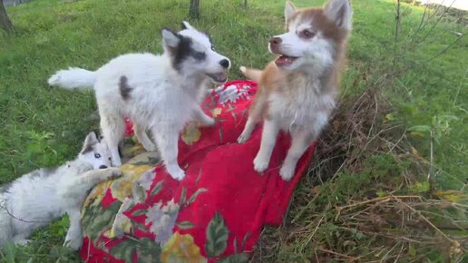 Щенки собак хаски, полны энергии.