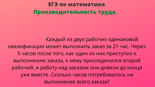 Каждый из двух рабочих может выполнить заказ за 21 ч